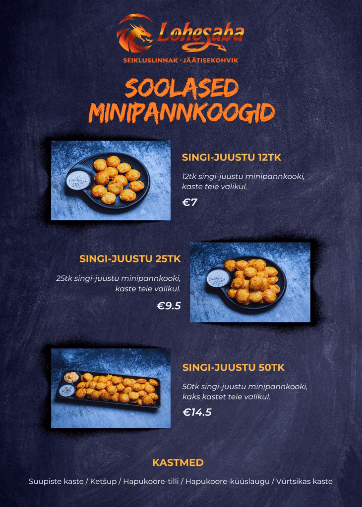 Lisaks jäätisele pakub meie kohvik nii soolased kui ka magusaid minipannkooke, friikartulid, supistete valik, kartulisalatit, Mamma’s valmis suppe ja pastasid ning laia joogivalikut. Teavet allergeenide olemasolu kohta toidetes saab jaemüüjalt.